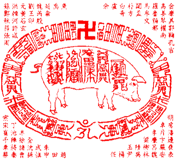 복성 돼지업이 기어드는 부적으로 사업,금전재수로 만사 소원성취하기 위하여 사용 한다.