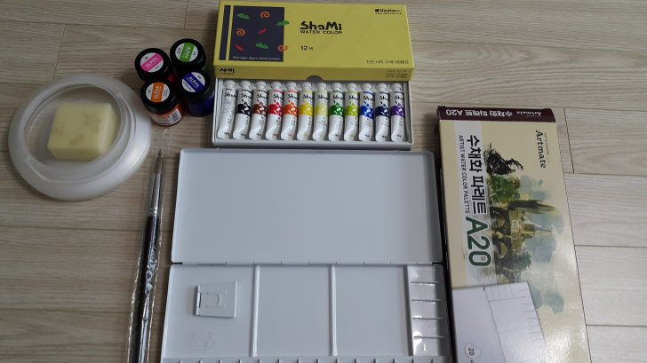 가방.패션.잡화.신발 샤미수챙술감12색,수채화바레트A20.색깔울감4개.물통.8호붓