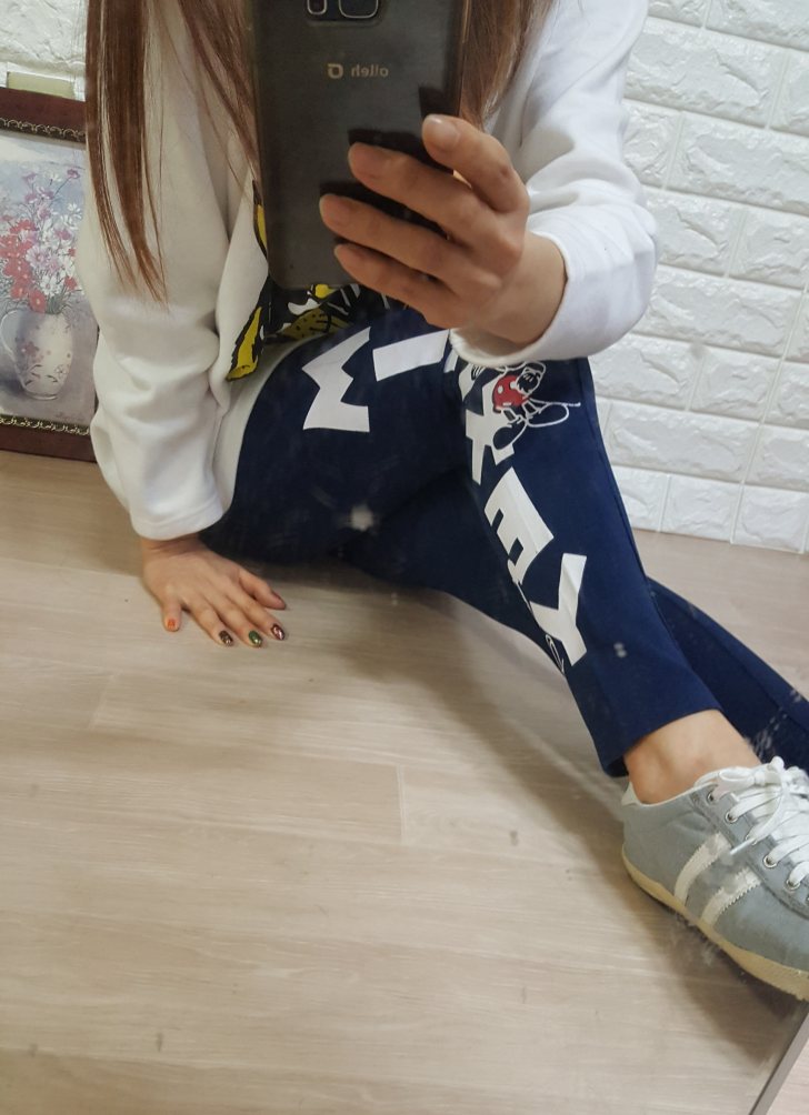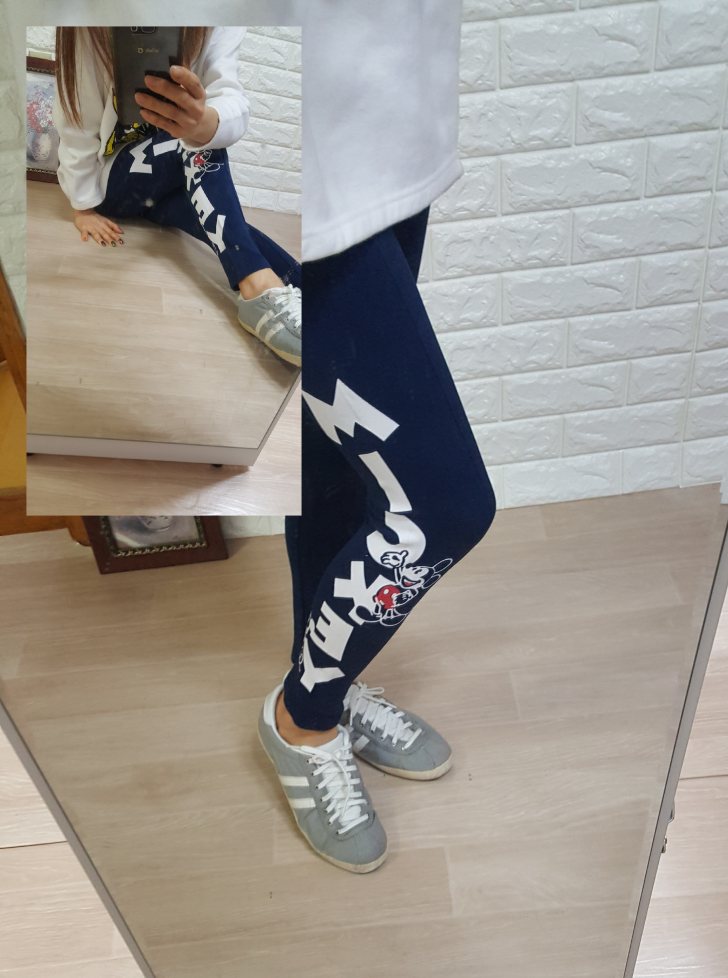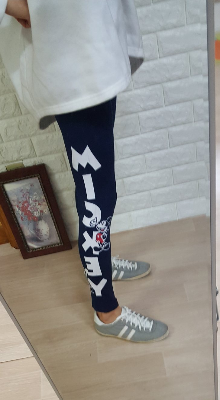 여성의류 영문미키레깅스 ㅡ 네이비