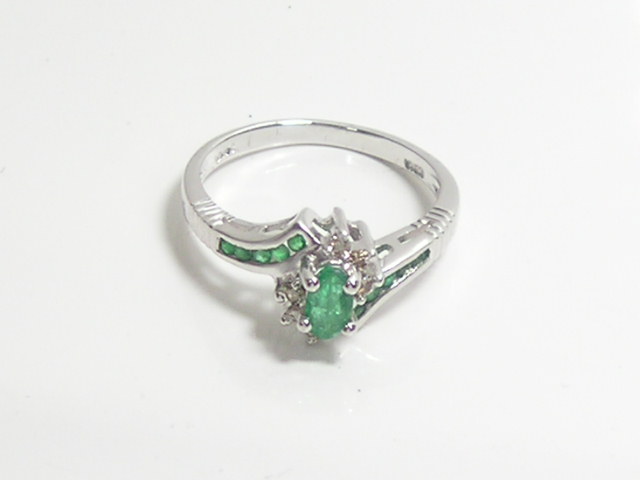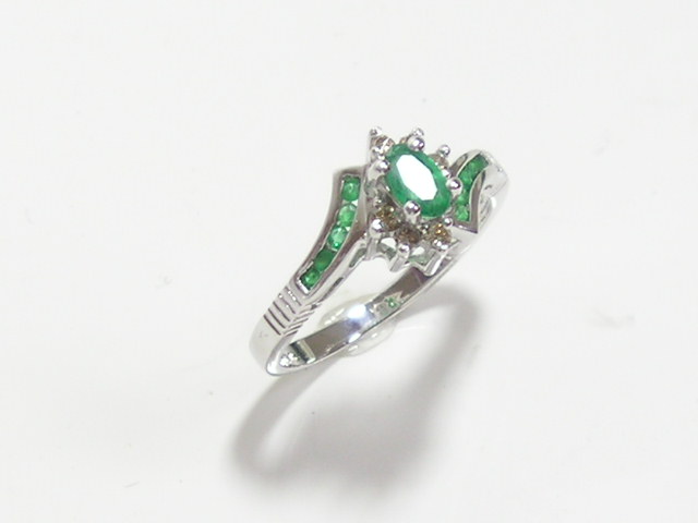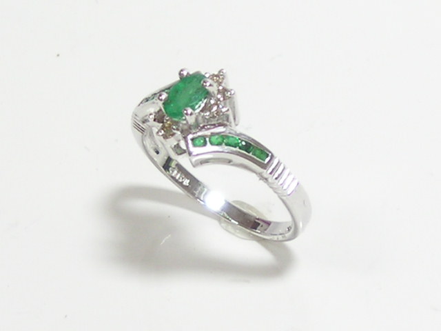 14k 천연 에머랄드 총 0.6ct 다이아 반지