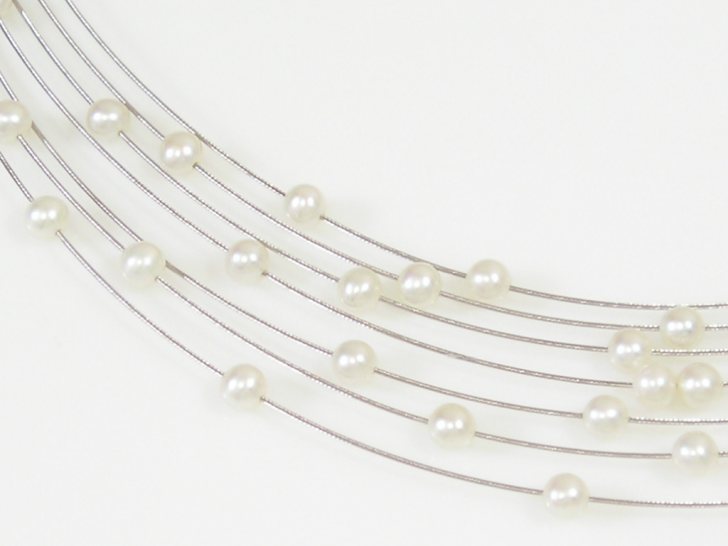 화장품.쥬얼리.시계 핑크래디 18K 7 라인 와이어 4MM 49PCS 진주 목걸이