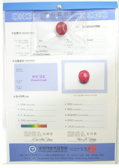산호는 얼과 실금이 인정되는 유일한 보석중의 하나이며