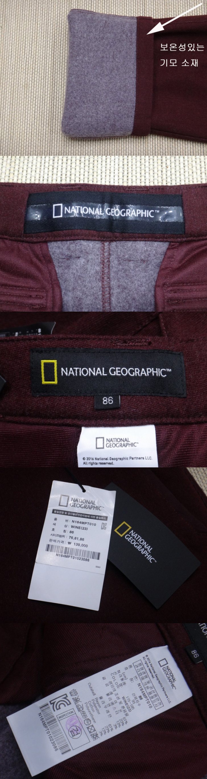 남성의류 (34인치) 내셔널지오그래픽 동절기 웨빙 테이프 포인트 팬츠 새제품