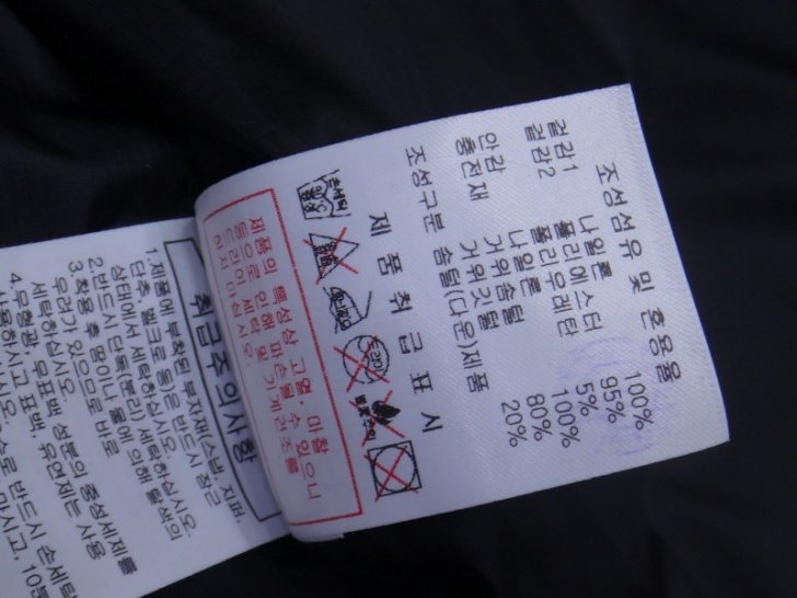 소재/겉감1:나일론100% (방풍원단)  겉감2:폴리에스터95%