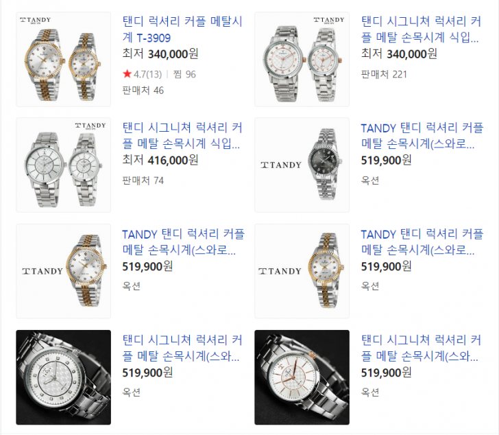 안녕하세요. 명품[탠디]럭셔리 커플메탈 손목시계 T-3909 입니다
