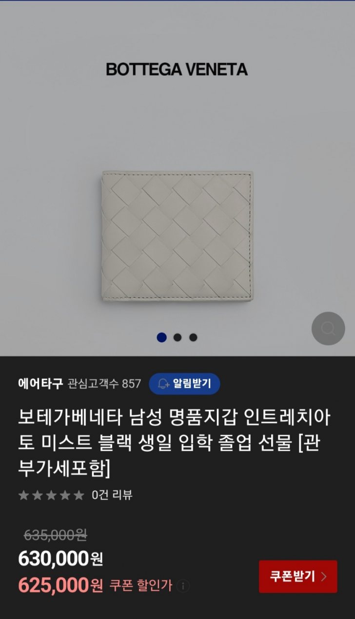 보테가 베네타 남성 반지갑 화이트 색상입니다