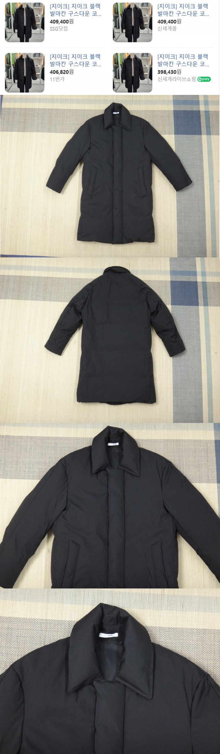 남성의류 (M/95) 지이크 블랙 발마칸 구스다운 패딩 코트