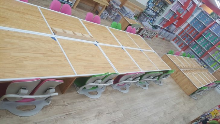 책상은 좌식이며 듀오백의자 25개 책상 25개입니다