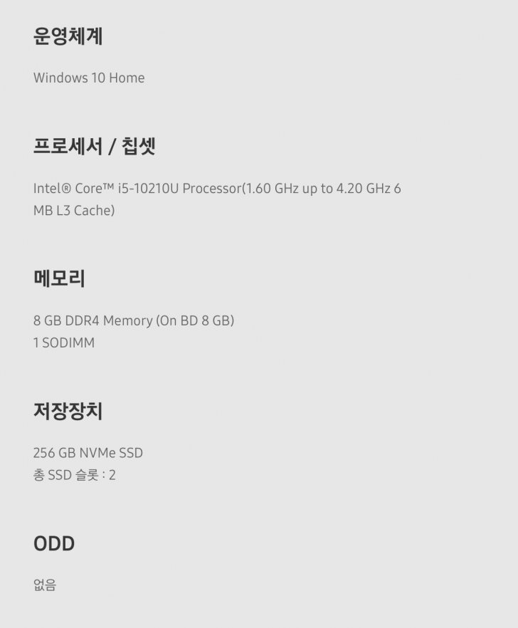 SSD : 256 GB NVMe SSD(슬롯 1개 더 있음)