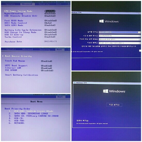 1.USB 꽂고 부팅과 동시에 바이오스 진입(F2/F10/DEL 등..컴에따라 진입키 다름)