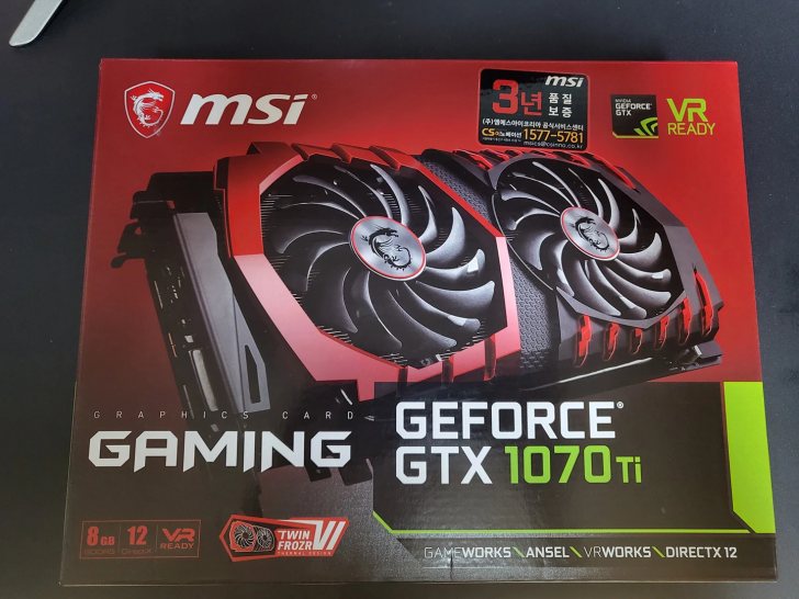 컴퓨터.주변기기 그래픽카드 msi gtx1070ti 팔아요