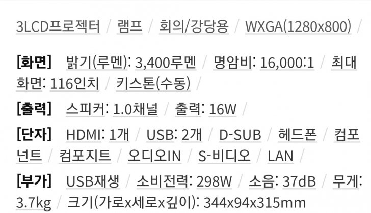 앱손 EB - 535W 극단초점 중고빔프로젝트