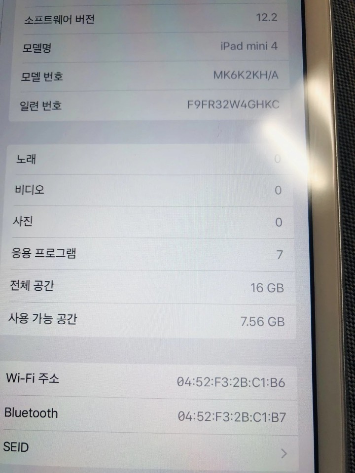 색상은 실버이며 16g 와이파이 모델입니다
