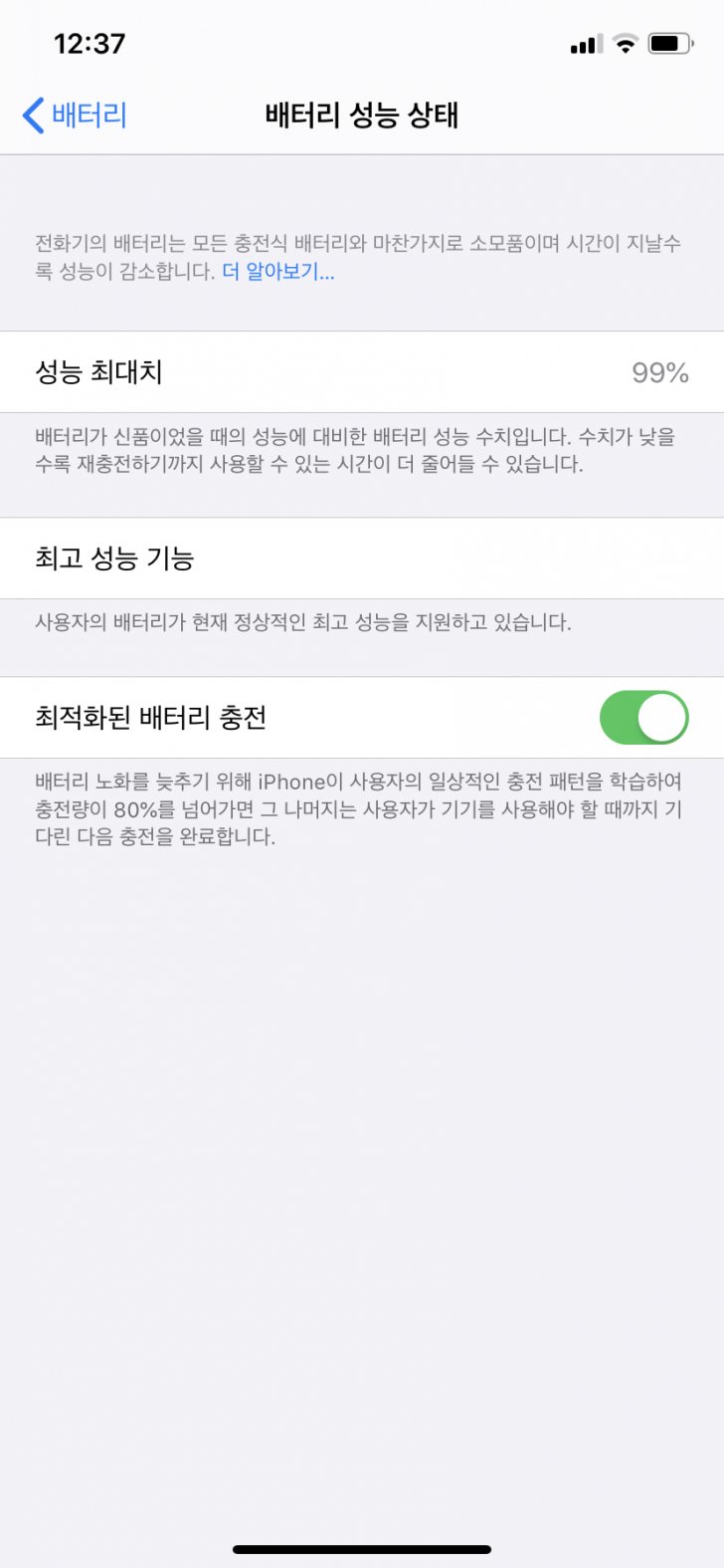 배터리 성능 99프로 왼쪽상단에 약간 흠집 있습니다