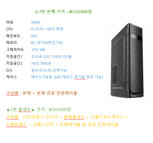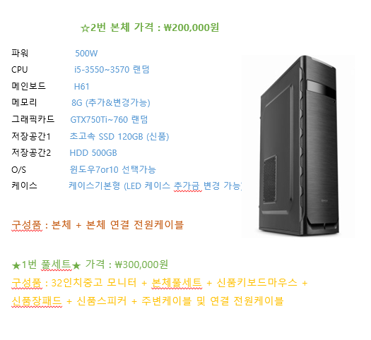 컴퓨터 가격 : 25만원(32인치 모니터+본체(주변기기) 풀세트 35만원)