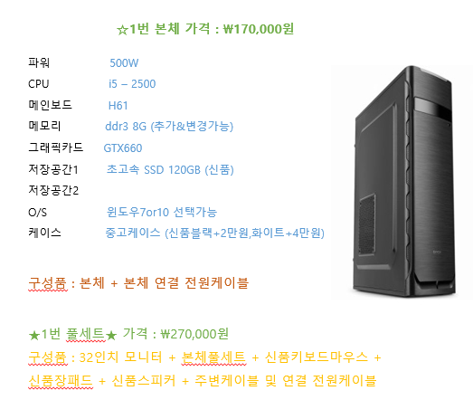 1번.(사무용 및 간단한 게임 구동가능)