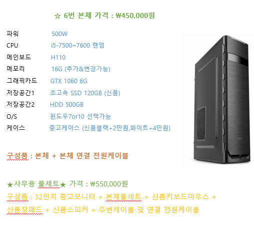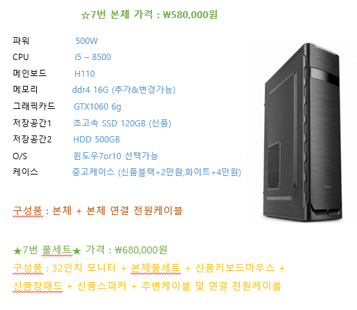 컴퓨터 가격 : 58만원(32인치 모니터+본체(주변기기) 풀세트 68만원)