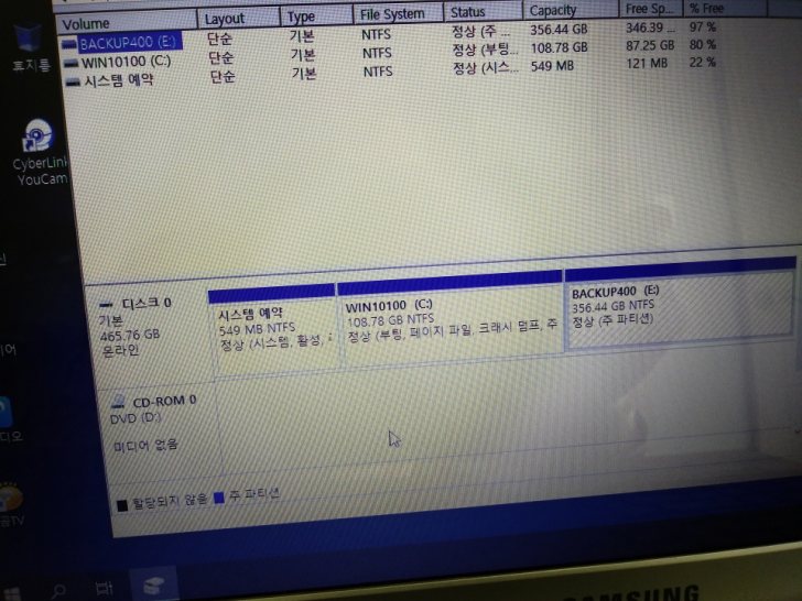 HDD : 500GB (C:100GB와 backup: 400GB 로 파티션 나눔)