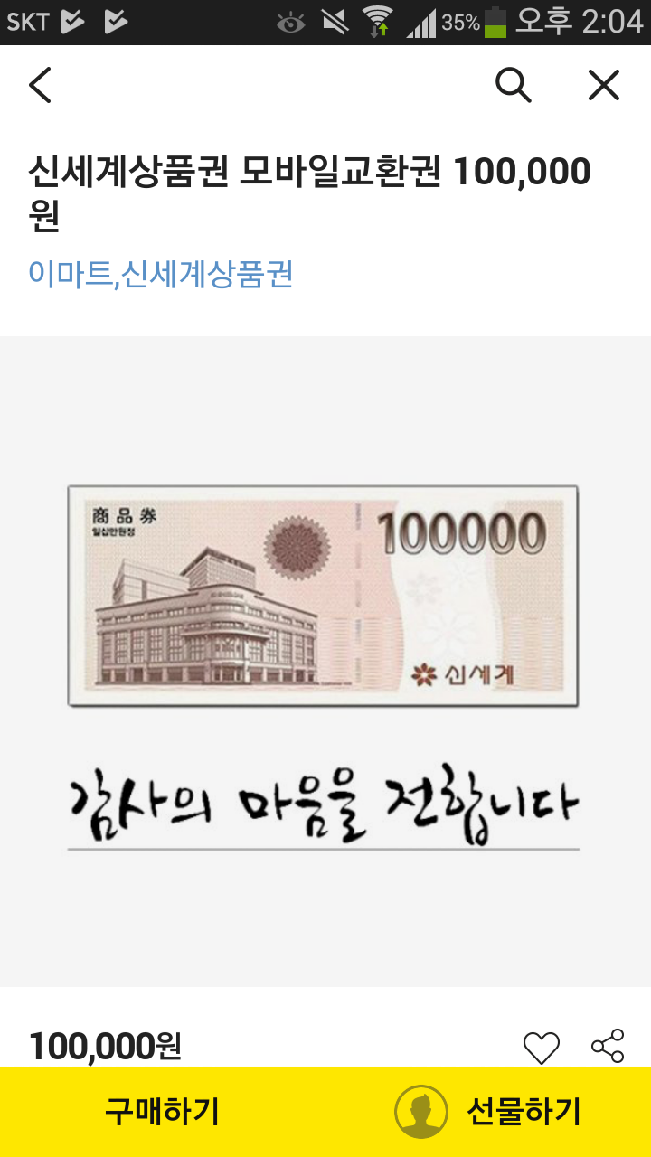 신세계백화점모바일10만원권상품권판매합니다.^^가격은85000원입니다.!문자나톡으로바로전송가능하고 매장에서종이상품권으로교환가능해요.!