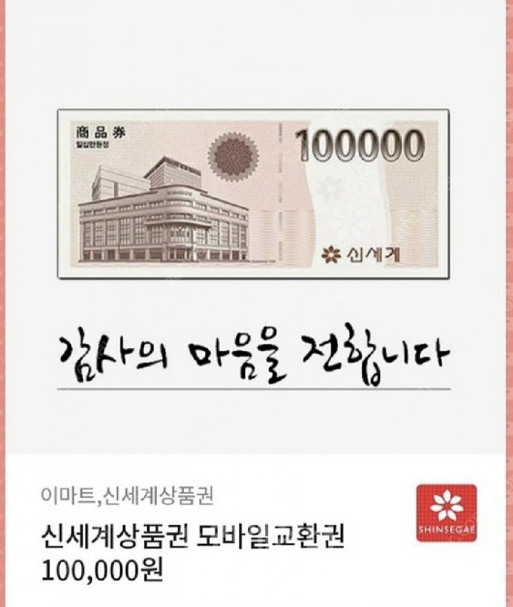 상품권.티켓 모바일 신세계 상품권 10만원권 7장 장당 85000원