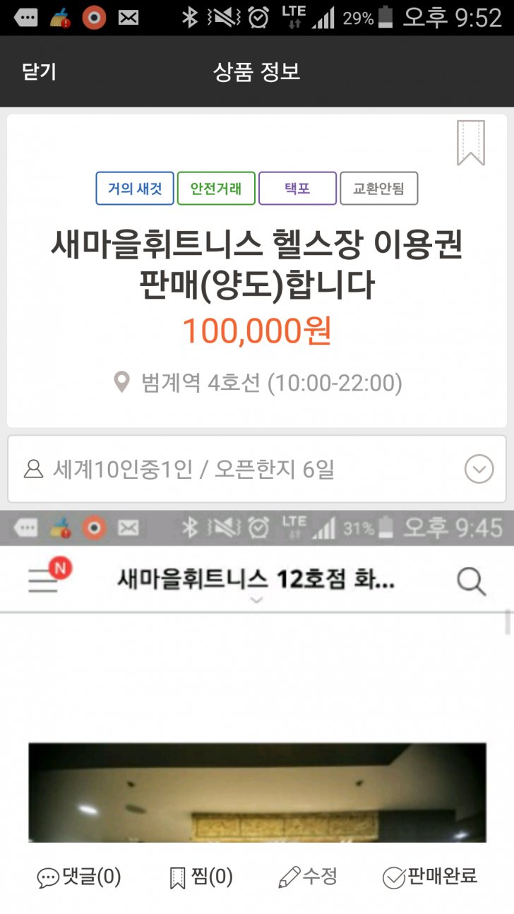 스포츠.골프.운동 새마을휘트니스 헬스장 이용권 판매,양도합니다