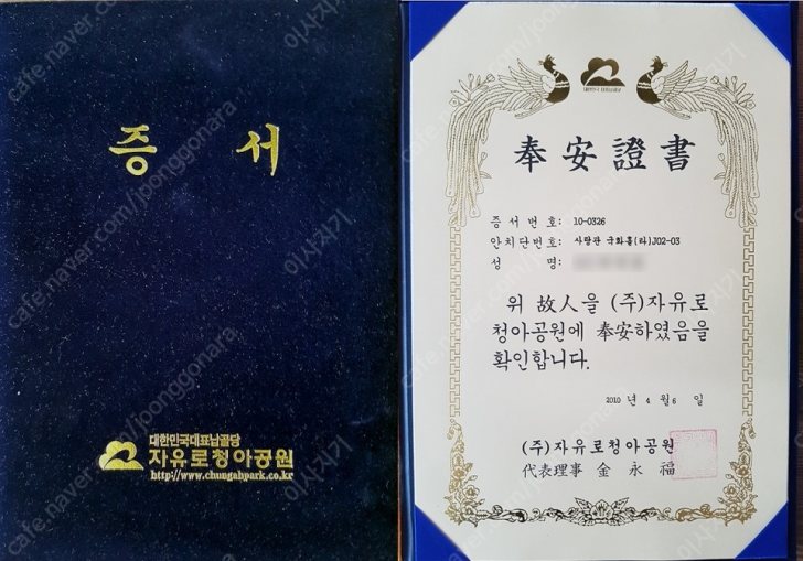 - 일산 청아공원 개인 안치단 양도합니다.