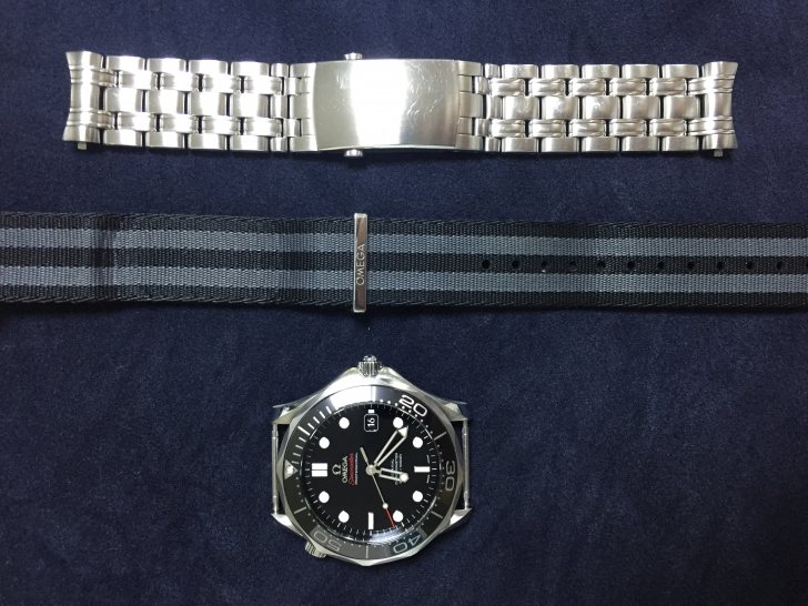 구성품은 사진과 같이 시계, 시계줄 2개(스틸/NATO), 정품 카드, 박스, 케이스로 빠진 것 없습니다. 시계줄의 종류가 2개인 이유는 NATO스트랩을 추가 구입하여 스틸에서 나토 스트랩으로 바꿔 착용 가능합니다.