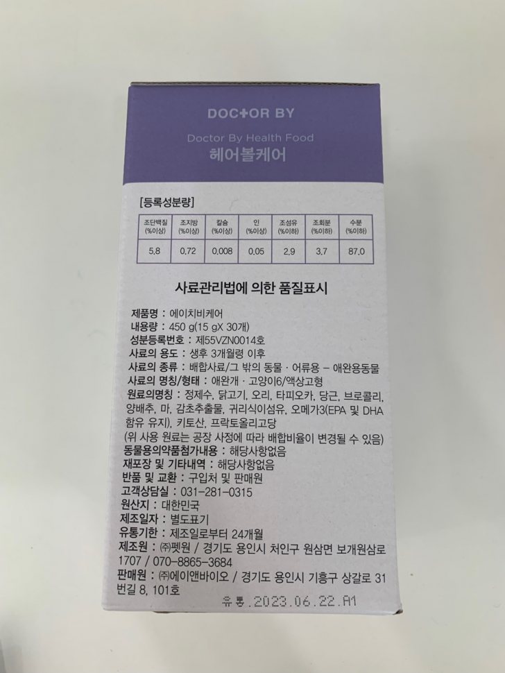 2) 닥터바이 헤어볼케어 : 고양이 3대 사망원인 중 하나인 소화기질환(구토/설사/혈변/위염/장염 등)을 예
