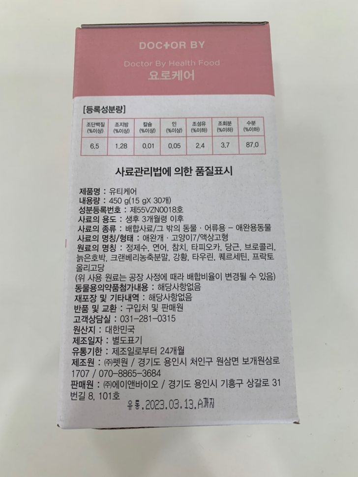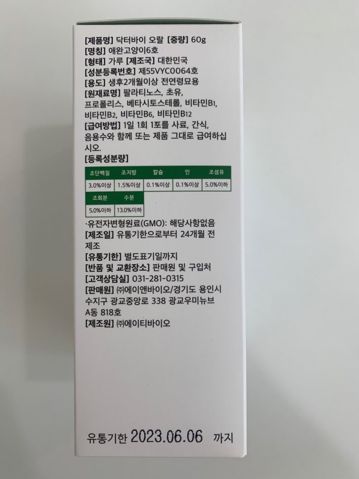 3) 닥터바이오랄 : 고양이 치석,치태,세균 등 구강면역을 위해 하루 1포로 구강케어 가능합니다.