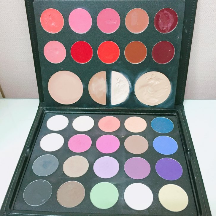 클렌징크림,토닉,로션,아스트린젠트,영양크림,베이스,파우더,메이크업팔레트,브러쉬(6ea),눈썹칼,눈썹가위,눈썹브러쉬,에보니펜슬,펜슬,아이라이너,마스카라,립브러쉬,면봉,어깨보,메이크업라텍스,속눈썹